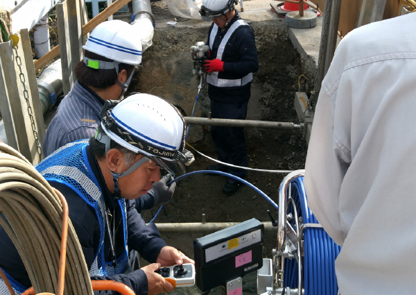 カメラにより管内の状態を確認してから洗浄を行い、更生の準備を整えます。